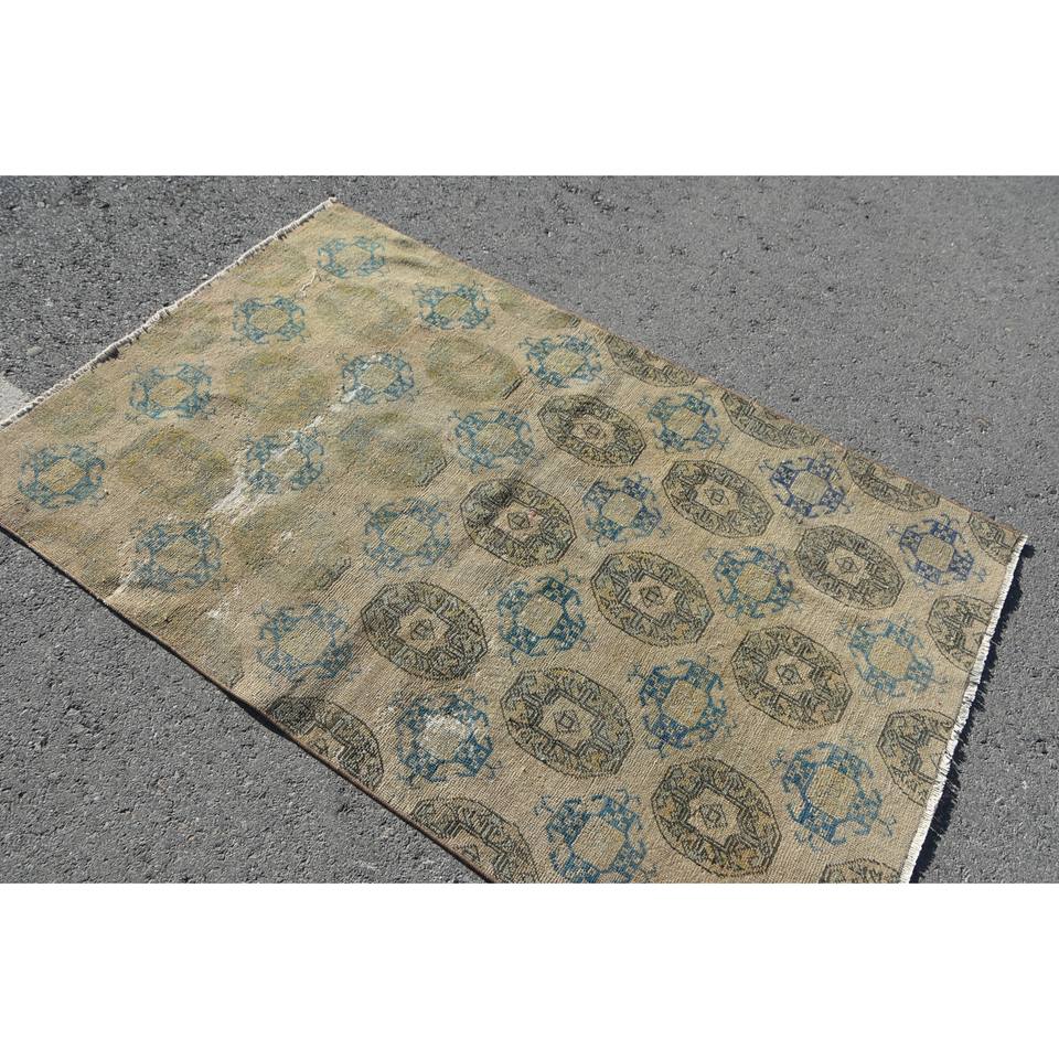Alfombra clásica de lana azul Beige de 3,6x5,7 pies, diseño de retazos rectangular turco hecho a mano para sala de estar, dormitorio con respaldo de látex