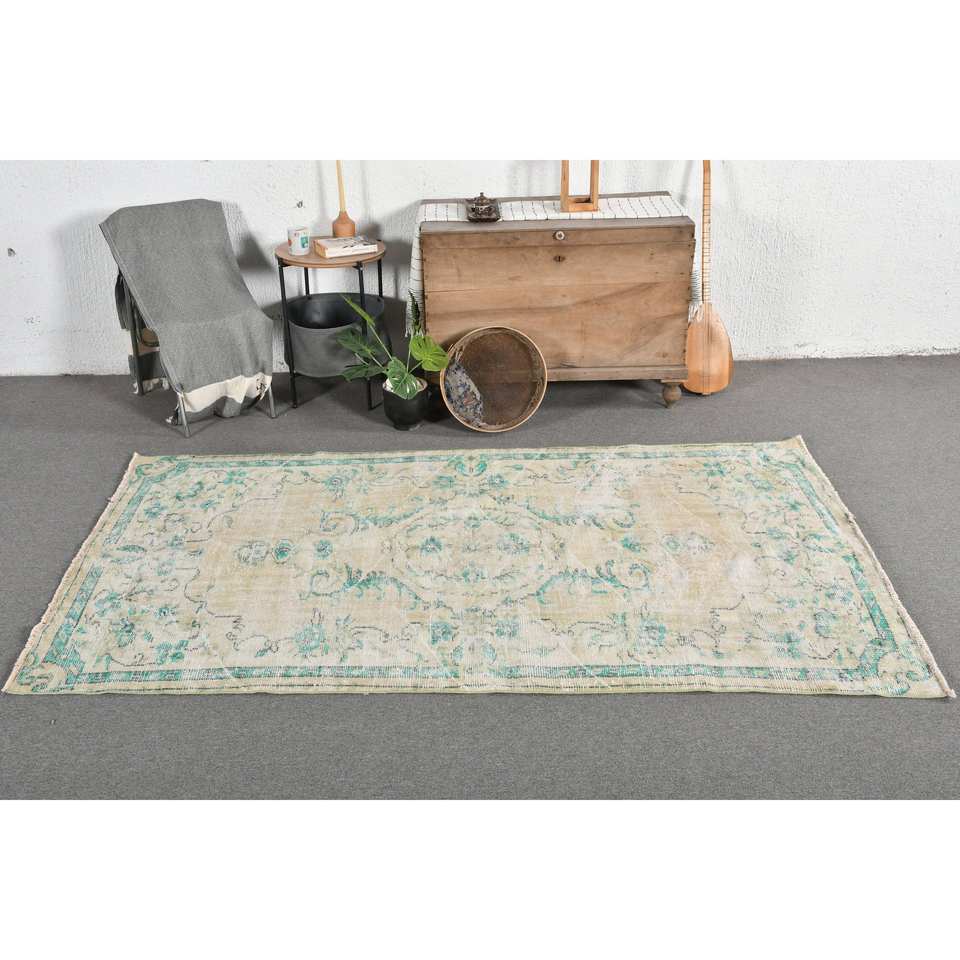 Alfombra clásica de lana de retazos verde Beige 4,5X7,8 pies diseño Aubusson turco para sala de estar pasillo de noche rectángulo de látex