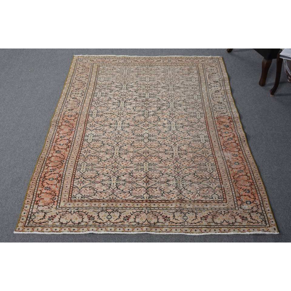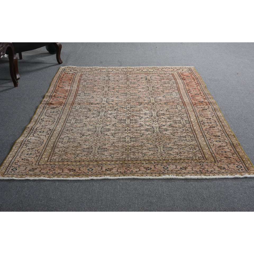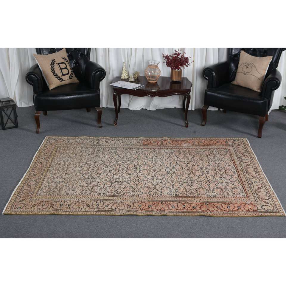Alfombra clásica de lana de retazos beige y naranja, 4,8x7,1 pies, pasillo Rectangular turco para entrada, sala de estar, alfombra de látex para cabecera