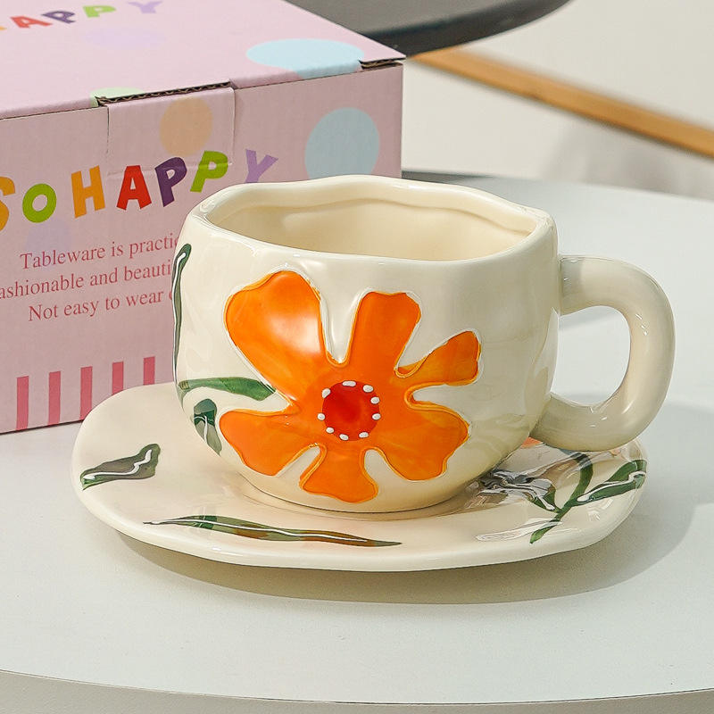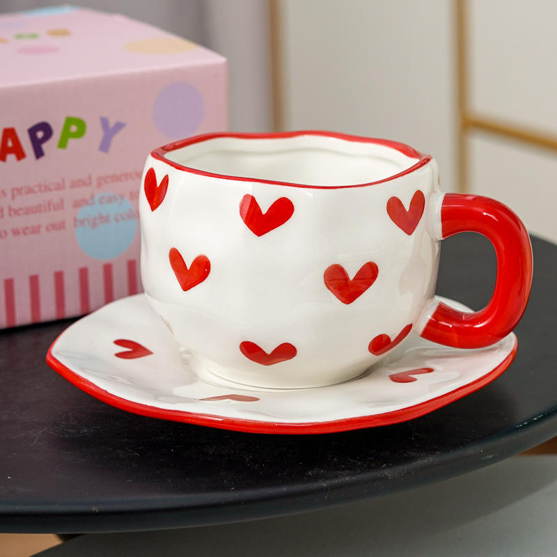 Clásico más vendido juego de taza y platillo de porcelana hecha a mano, diseño irregular, 350 ml, regalo de té de la tarde para amigo
