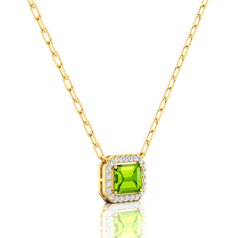 Collar clásico de piedra natal en oro sólido de 18K, COLLAR COLGANTE de abalorio de piedras preciosas de peridoto natural adornado con diamantes reales a granel
