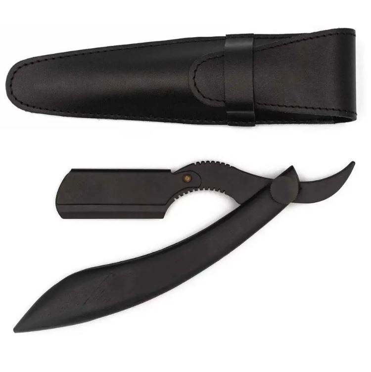 Maquinillas de afeitar plegables de peluquero con revestimiento de Color negro clásico, maquinillas de afeitar de garganta cortadas de 6,5 ", maquinilla de afeitar de seguridad Manual con Funda de cuero