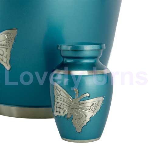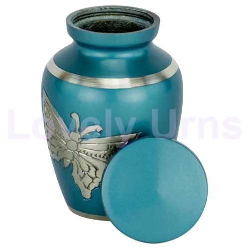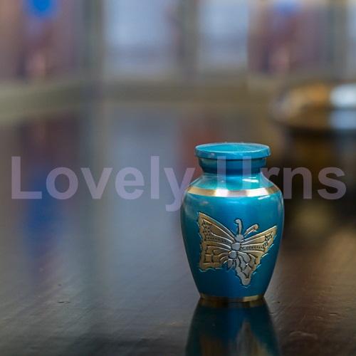 Caja de terciopelo libre de urnas de recuerdo de aluminio pequeño de mariposa grabada azul clásica