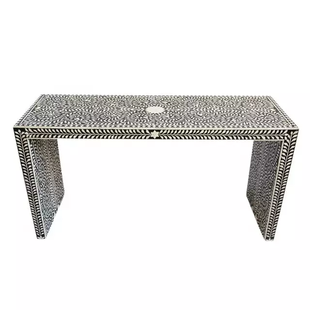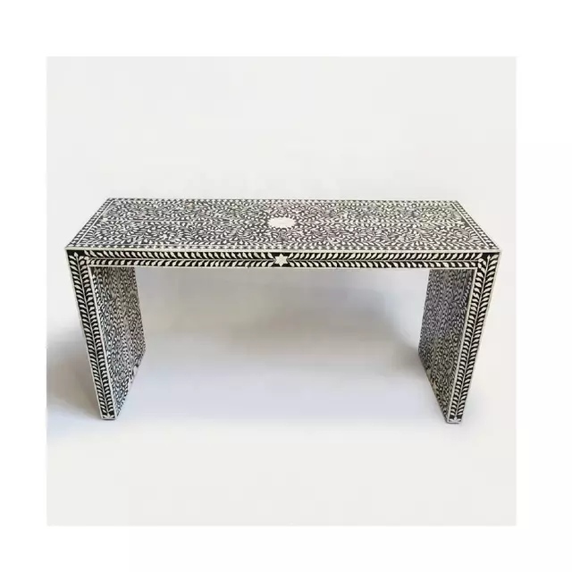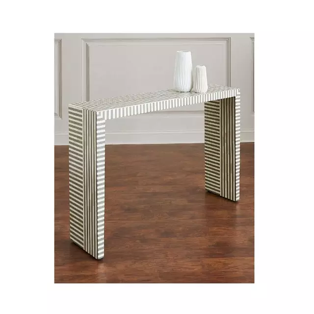 Mesa de Centro Moderna con Incrustaciones de Concha y Hueso, Diseño a Rayas, Color Natural, Mueble Duradero Hecho a Mano, Logotipo Personalizado, Decoración para el Hogar y Bodas