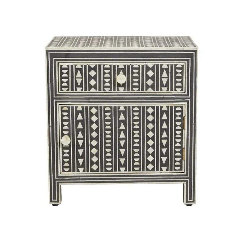 Mesa Auxiliar Clásica con Incrustaciones de Hueso, Gabinete de Almacenamiento de Madera Hecho a Mano con Patrón Decorativo de Lujo