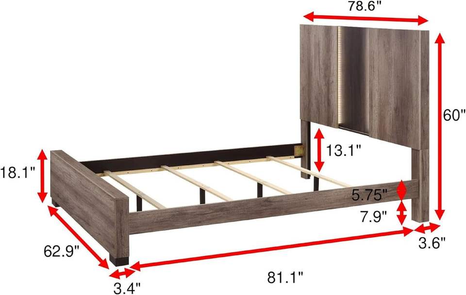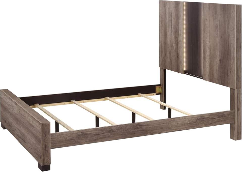 Cama clásica con panel King contemporáneo marrón Beige con cabecero de luz LED Marco de madera maciza duradero Ambiente de dormitorio sereno