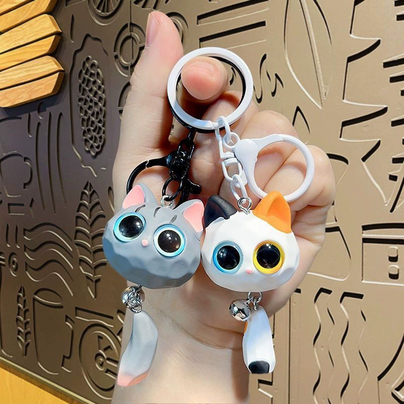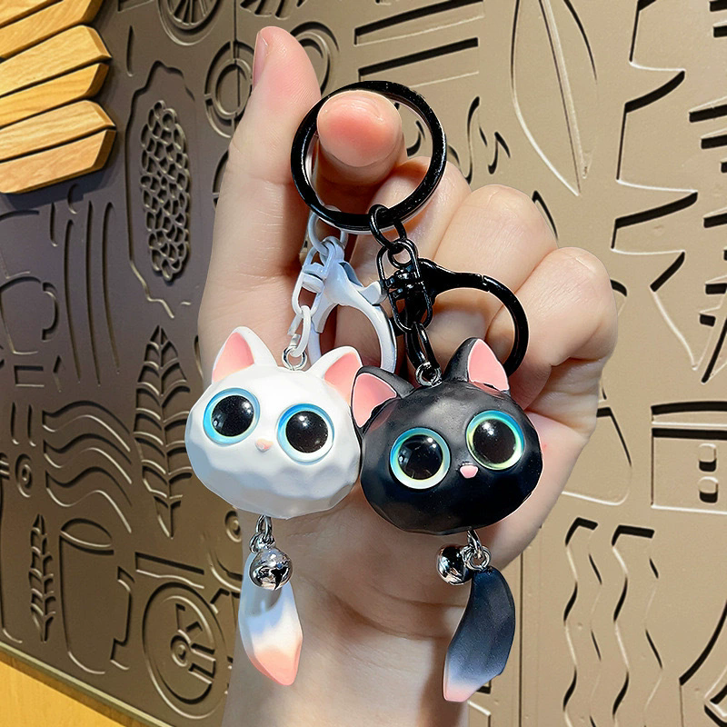 Llavero de Resina con Cabeza de Gato de Dibujos Animados Clásicos, Colgante de Gato con Ojos Grandes, Llavero de Muñeca 3D, Amuleto para Parejas, Pequeño Regalo al por Mayor