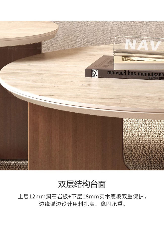 Mesa de centro pequeña circular clásica con tapa de piedra sinterizada, mesa auxiliar duradera para sala de estar para apartamento pequeño