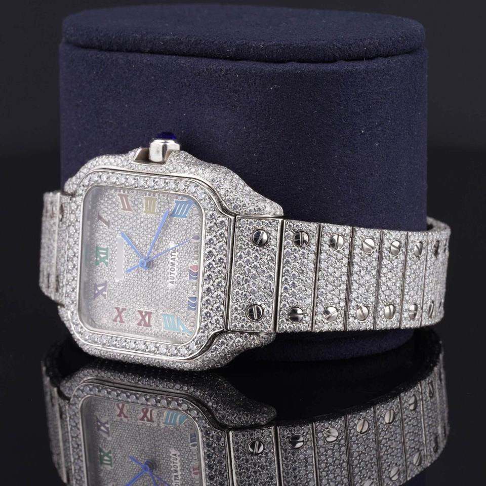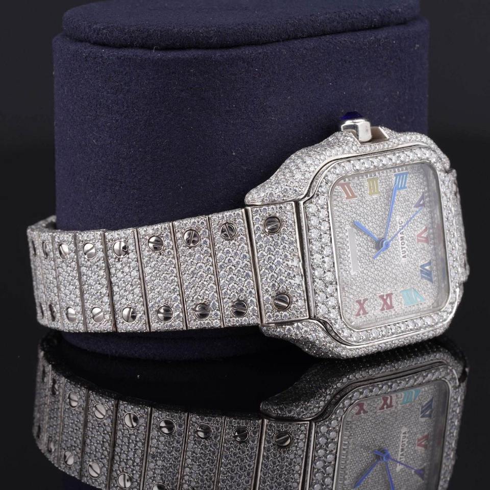 Reloj de Pulsera Clásico con Esfera Romana Colorida, Diamantes Cultivados en Laboratorio HPHT, para Hombre y Mujer, Movimiento Automático Japonés, Reloj con Incrustaciones de Diamantes, Pasa Pruebas