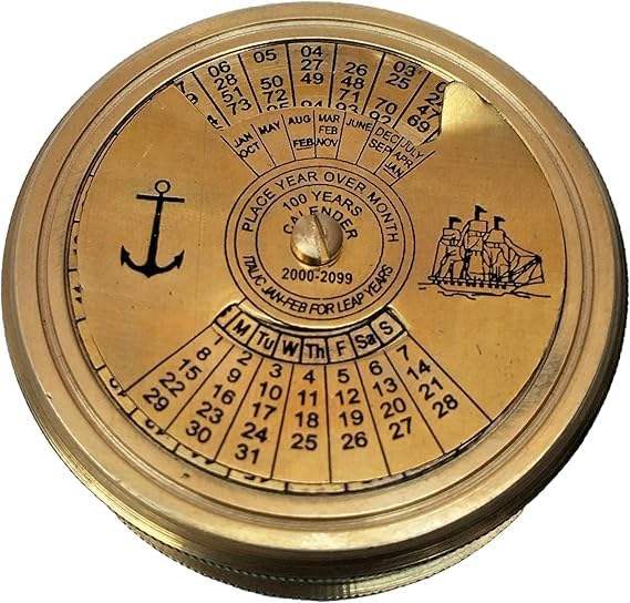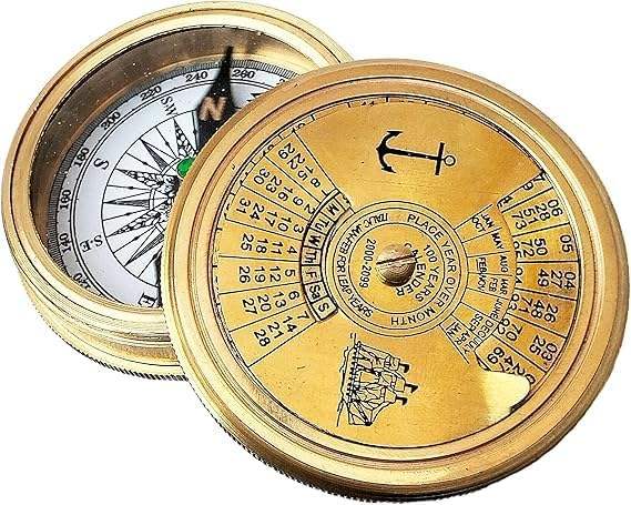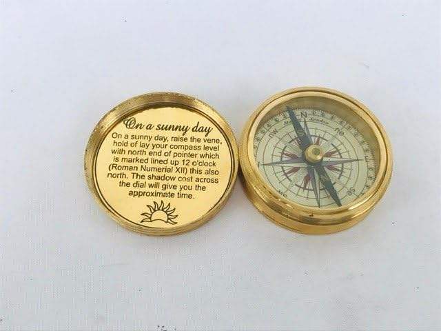 Llavero de brújula clásica de cobre con patrón circular, ligero y ecológico, con grabado de reloj de sol y poema de Robert Frost, ideal para regalo.
