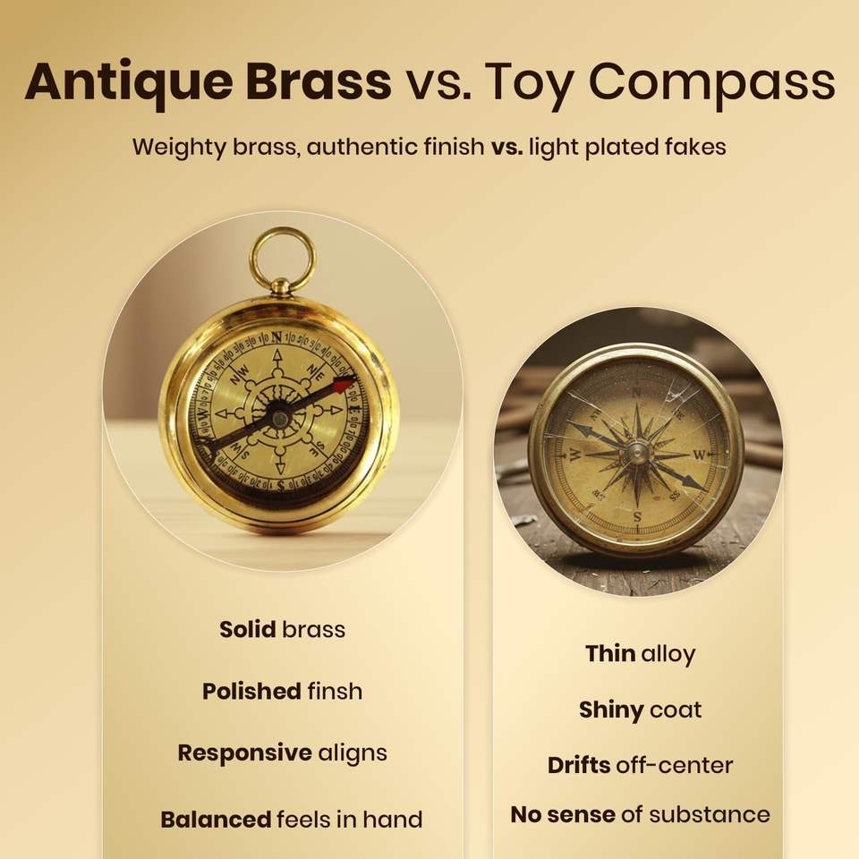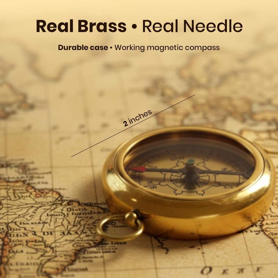 Brújula Clásica de Cobre Hecha a Mano, Rectangular, Ligera, Plegable, Ecológica, Instrumento de Navegación Totalmente Funcional