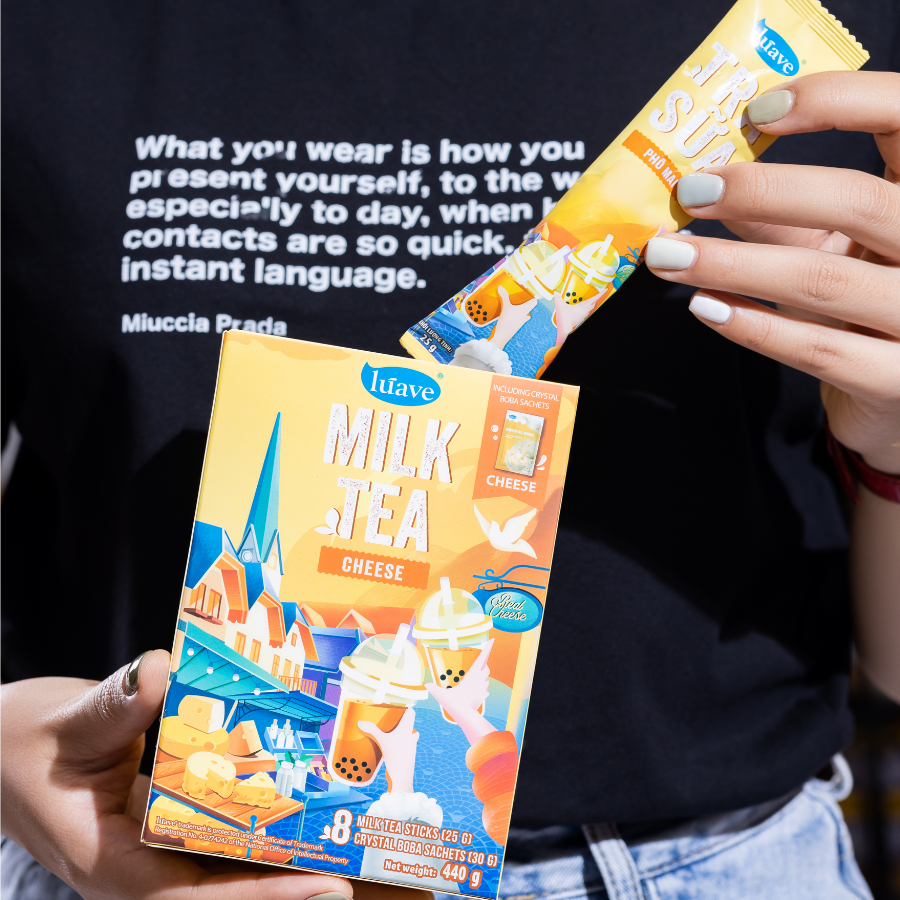 Embalaje:8 paquetes de té con leche y 8 paquetes de perlas de tapioca