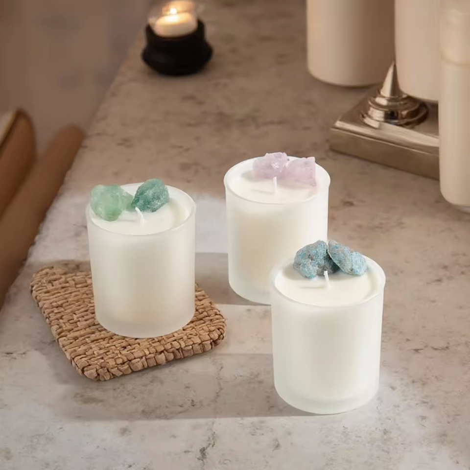 Caja de regalo personalizada con piedras de cristal clásicas, velas de aromaterapia de cera de soja perfumada para Diwali, barras de fragancias de cera de parafina para el Día del Padre