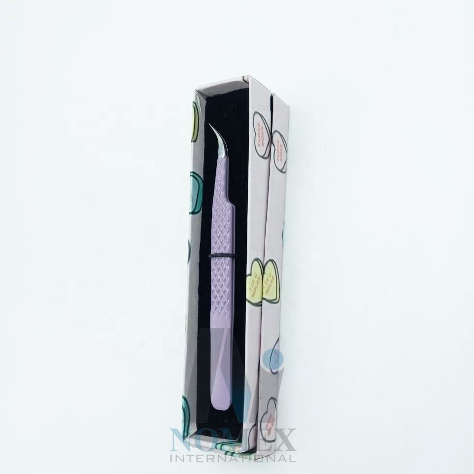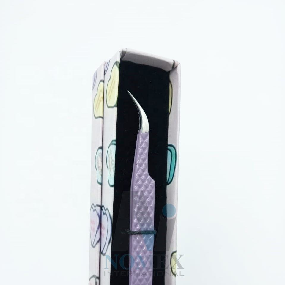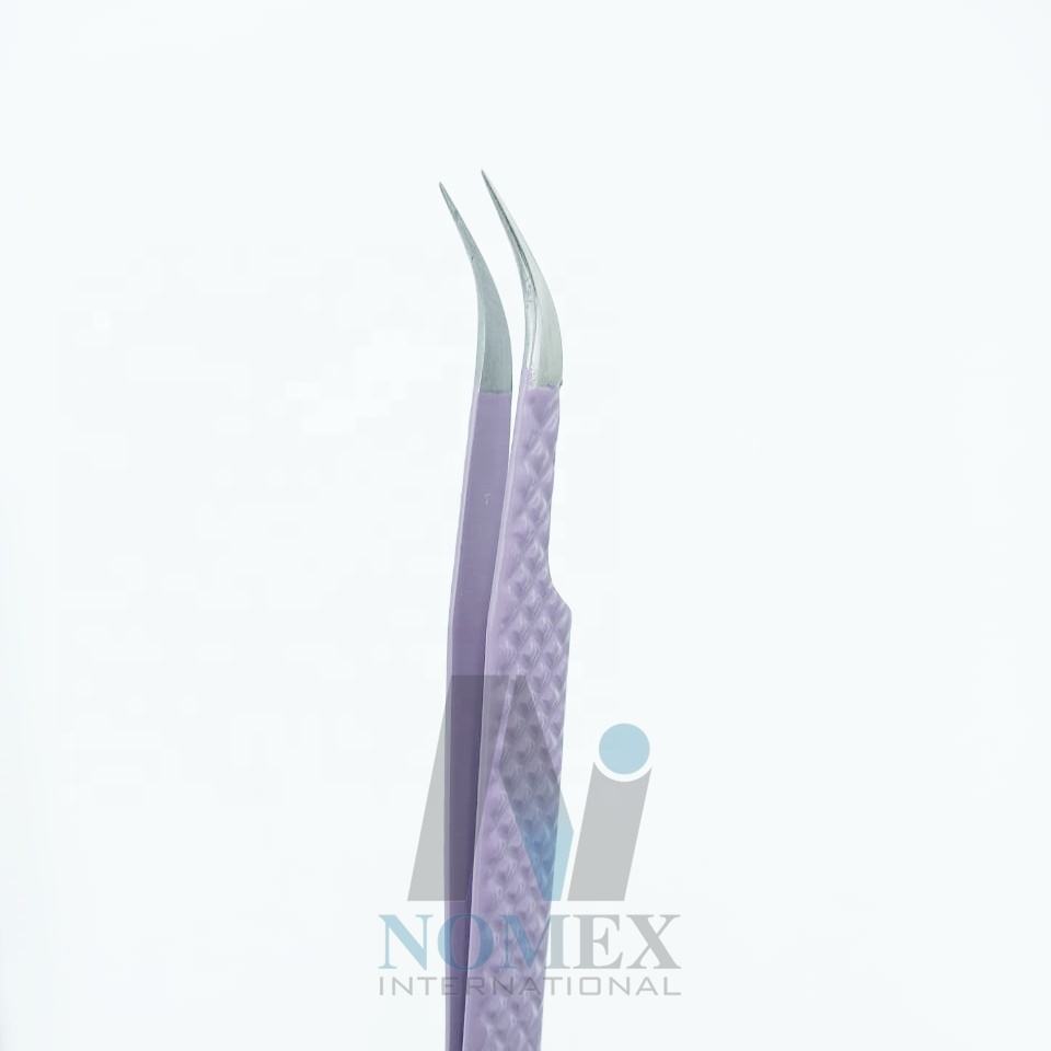 Pinzas de extensión de pestañas curvadas clásicas en polvo púrpura recubierto de diamante pinzas para pestañas probadas a mano pinzas de agarre fuerte