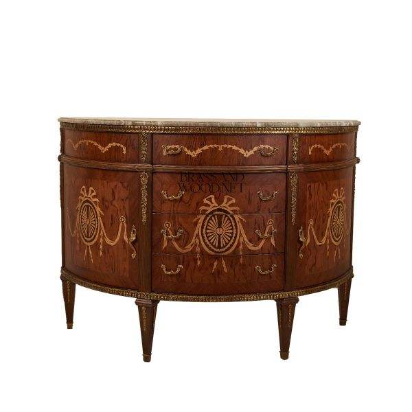 Consola Clásica Curva de Madera con Tapa de Mármol y Detalles Decorativos Incrustados, Consola de Almacenamiento de Lujo para Sala de Estar
