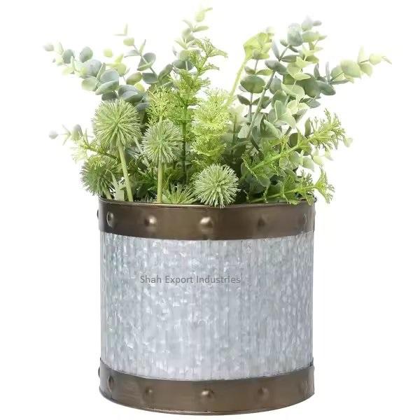 Maceta de flores redonda de Metal galvanizado de diseño clásico perfecta para macetas decorativas de jardín interior y exterior