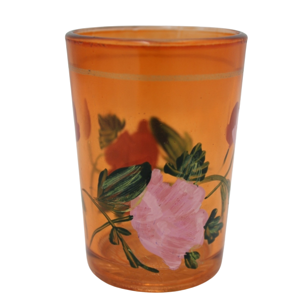 Diseño clásico Material de vidrio Color naranja Acabado antiguo ETCH Print Candle Votive Holder para decoraciones para el hogar hechas a mano