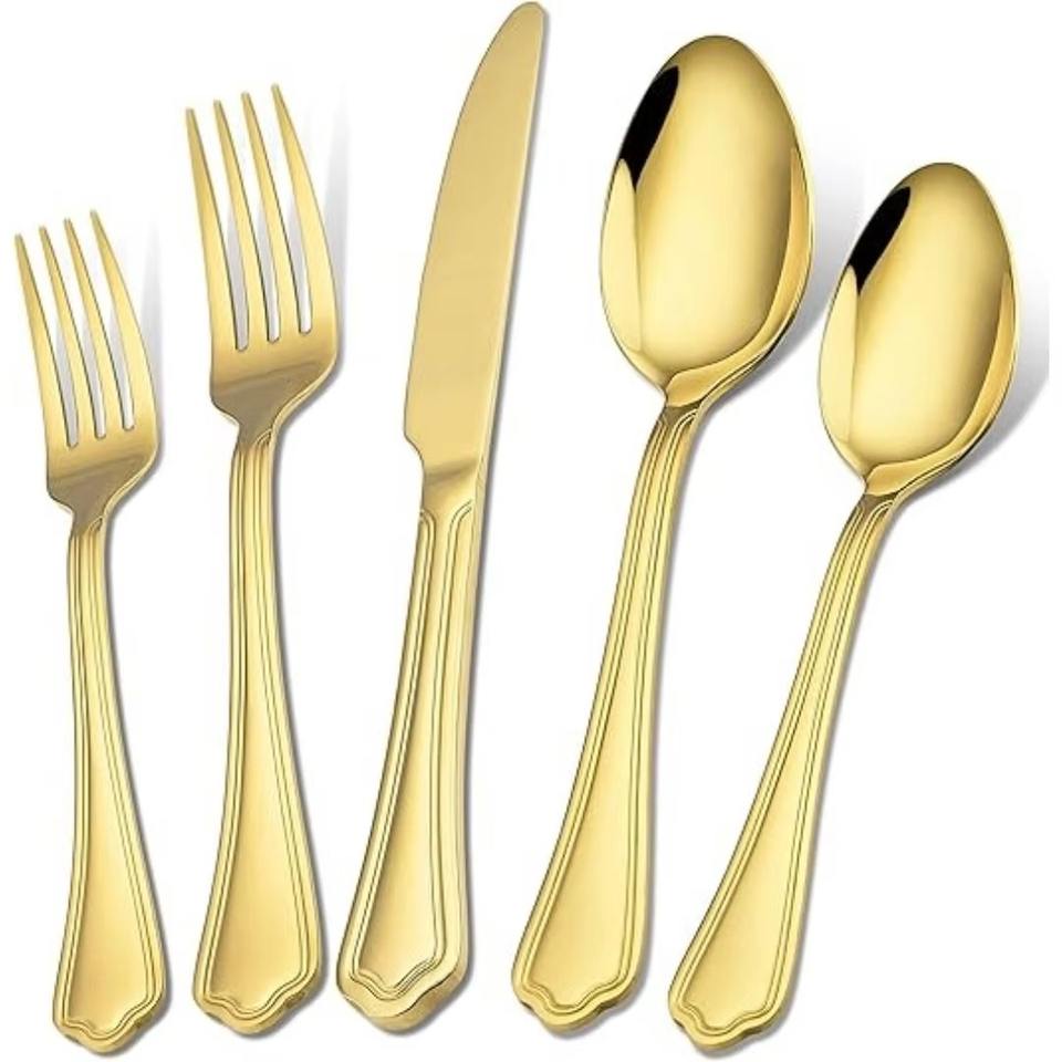 Cubiertos de acero inoxidable con acabado recubierto de 2 colores y mango de diseño clásico, cubiertos aptos para lavavajillas para uso en bodas y hoteles, juego de 5