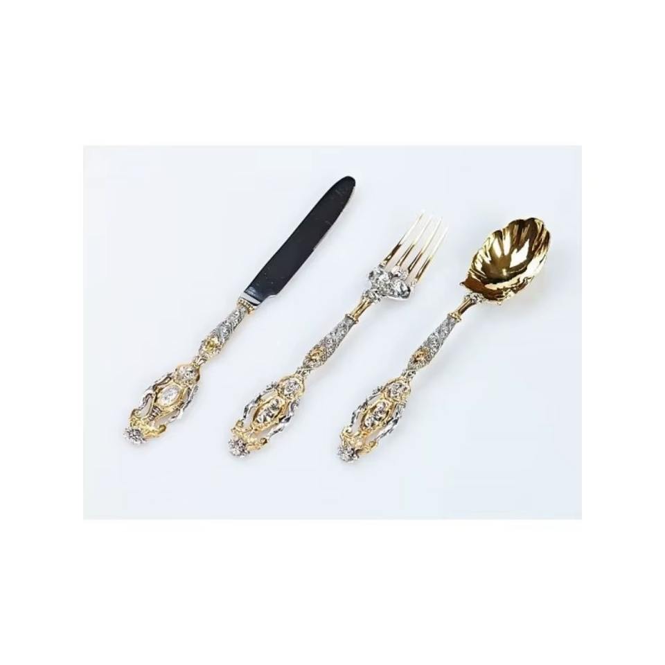 Cubiertos de acero inoxidable con acabado Chapado en 2 colores y mango de diseño clásico, cubiertos aptos para lavavajillas para uso en bodas y hoteles, Juego de 3