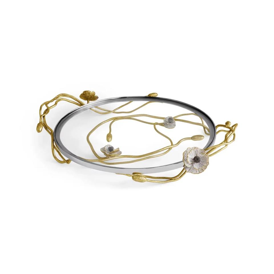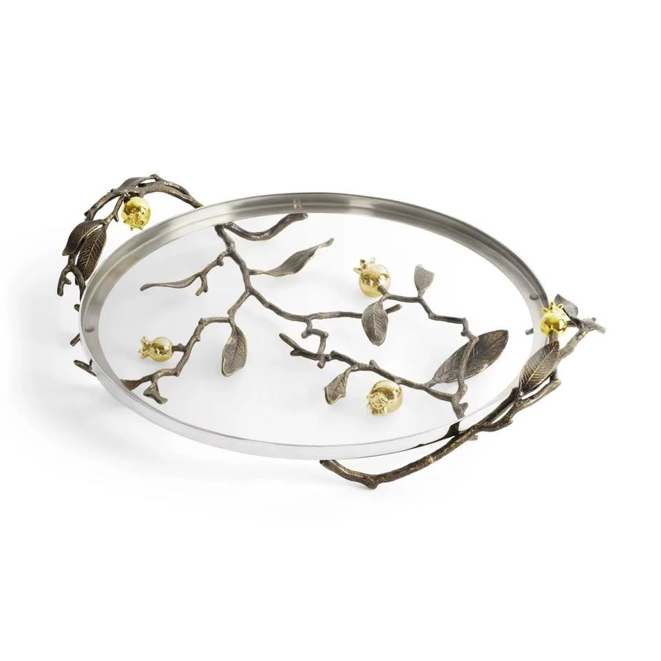 Bandeja de Metal Personalizada Hecha a Mano, Diseño Clásico, Ecológica, Duradera, con Asas Florales para Decoración del Hogar, Apta para Lavavajillas