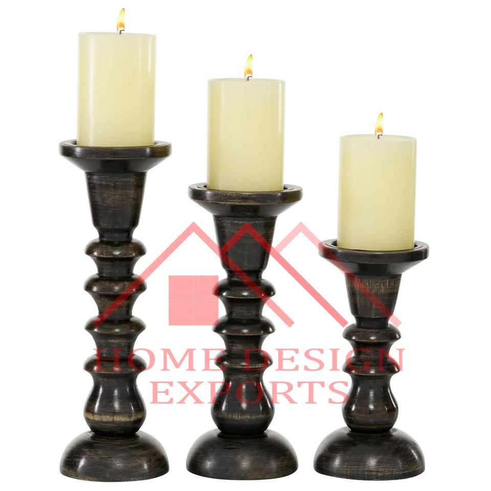 Juego de 3 candelabros de madera de mango de diseño clásico para decoración de sala de estar de Hotel en casa a precio al por mayor, superventas