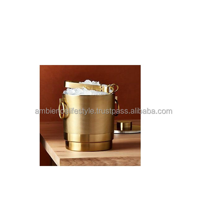 Cubo de hielo metálico de diseño clásico con tapa y asas laterales, ideal para almacenar hielo, enfriar vino y servir en bares.