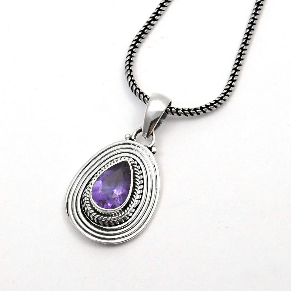 Diseño clásico Piedra preciosa de amatista natural Sólido 925 Collar con colgante de plata esterlina Diseño minimalista en forma de pera Colgante de lujo