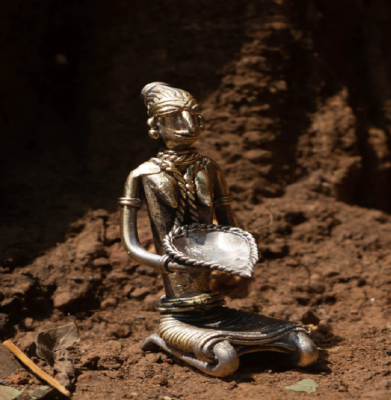 Escultura clásica de arte Dhokra de un caballo con un intrincado Diseño Artesanal, disponible a precios de mayorista.