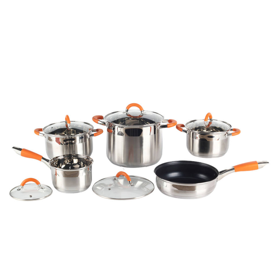Juego de Utensilios de Cocina Clásicos y Duraderos de Acero Inoxidable, Compatibles con Inducción, Tapa de Vidrio Azul, Mango de Acero Inoxidable para Olla de Pasta