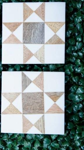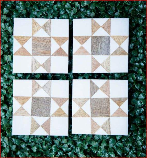 Juego de Posavasos Cuadrados Clásicos Ecológicos con Incrustaciones de Hueso, Hechos a Mano en India, Regalo Único para Bodas y Otras Ocasiones Festivas