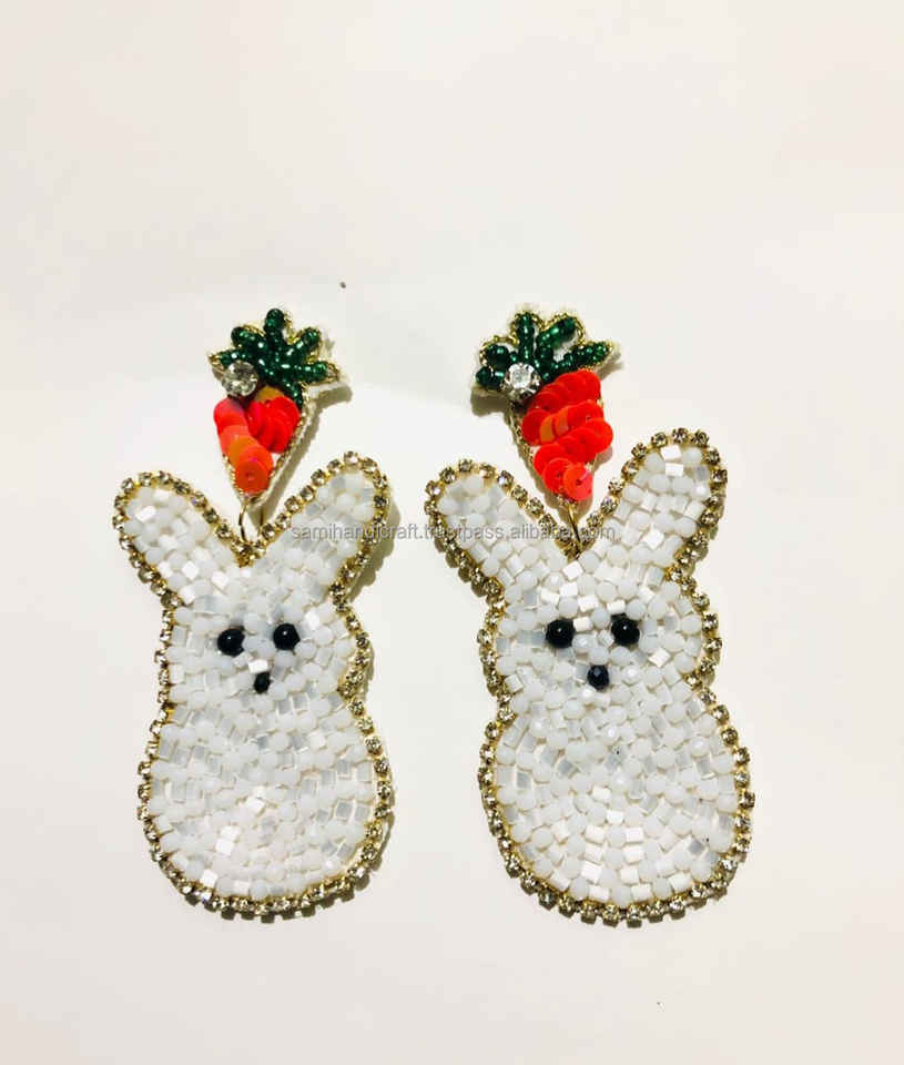 Pendientes Clásicos de Conejo con Cuentas Bordadas, Diseño Rectangular, para Aniversario, Estilo Ortodoxo