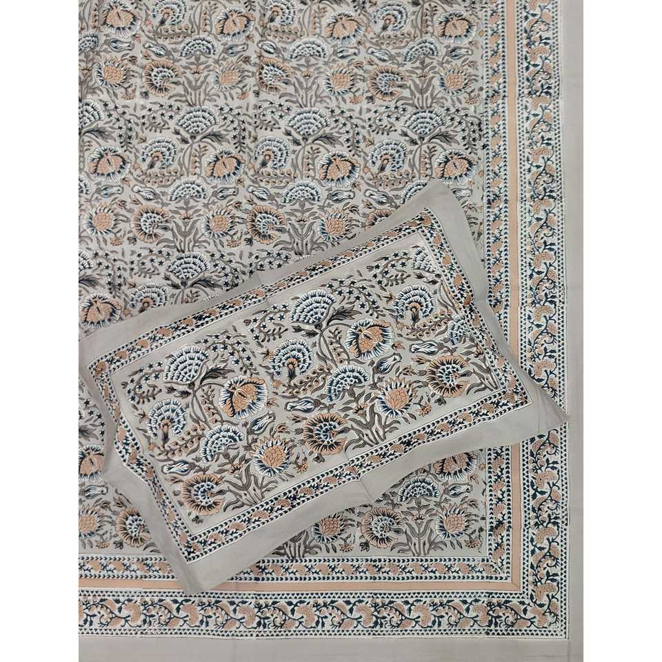 Juego de 3 Fundas de Almohada y Sábanas Dobles de Algodón Percal con Estampado Floral Clásico, Sábanas Ajustables Cómodas para Uso Doméstico 90 108