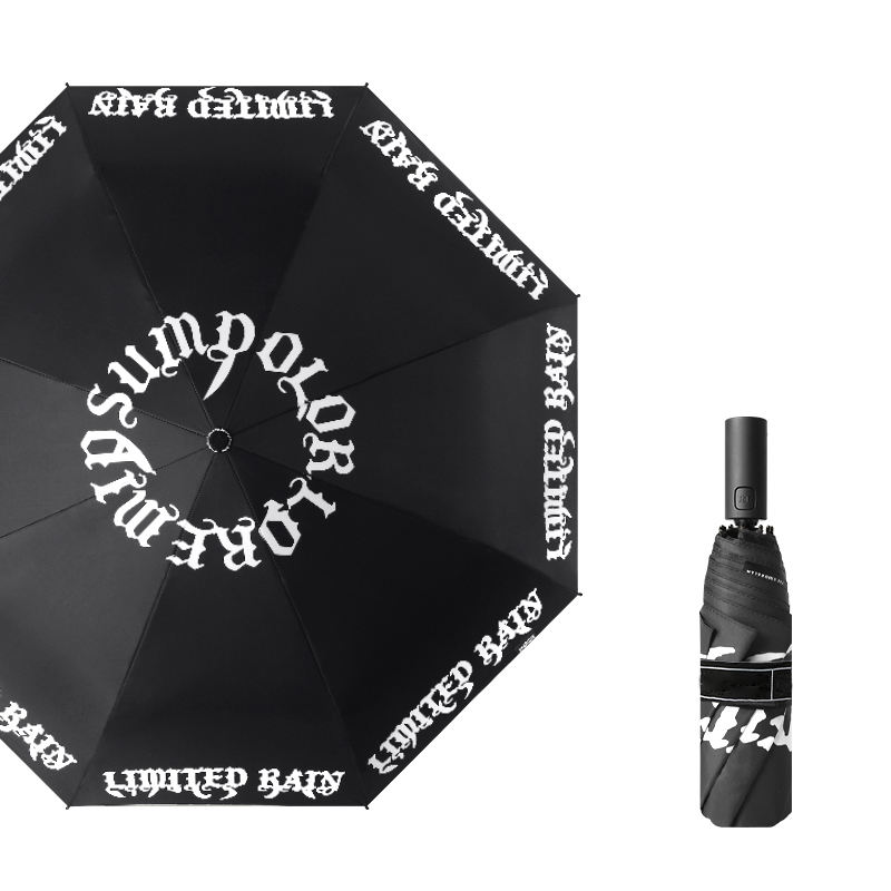 Paraguas plegable clásico completamente automático de tres capas, resistente al viento, revestimiento negro, protección UV, impresión completa personalizada para viajes