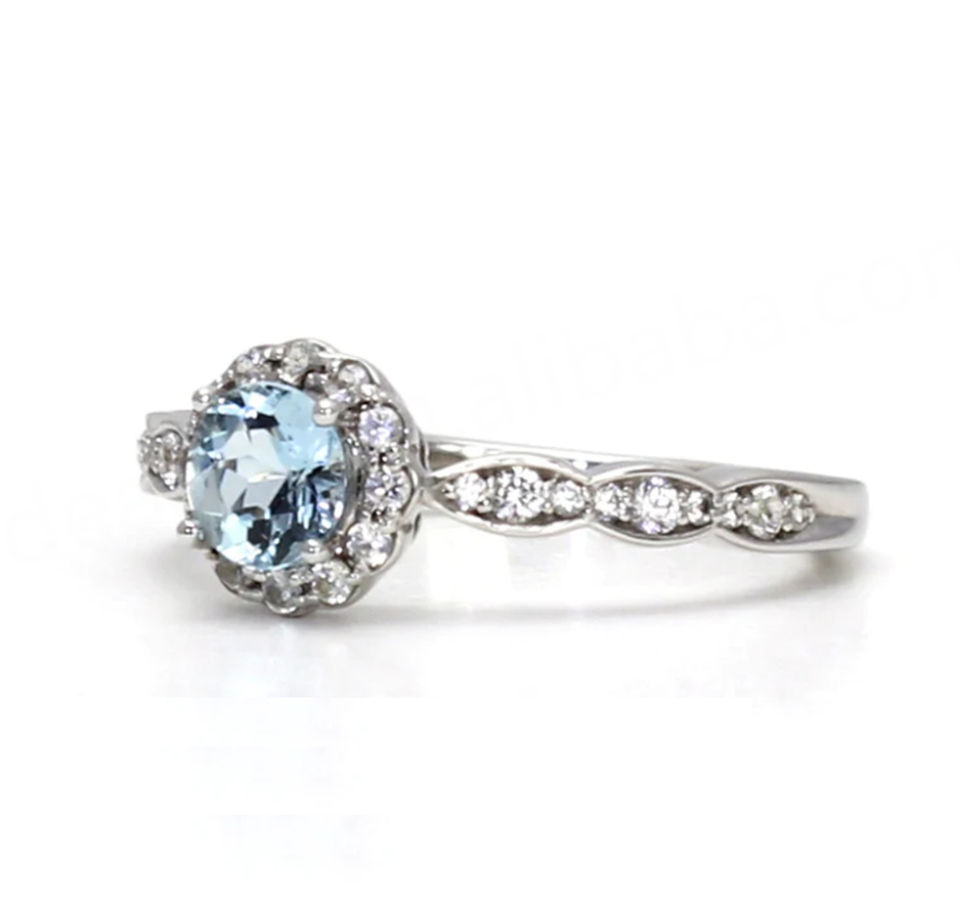 Anillo de topacio de fuego:Topacio Azul Simulado