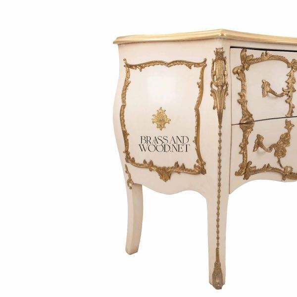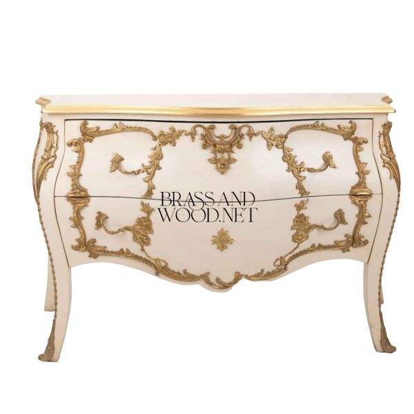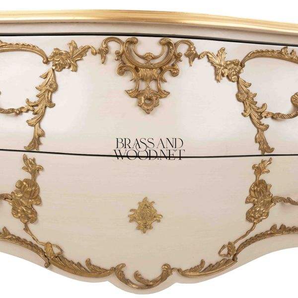 Consola Clásica de Madera Dorada con Diseño Curvo y Detalles Ornamentales en Dorado, Elegante Consola de Almacenamiento de Lujo
