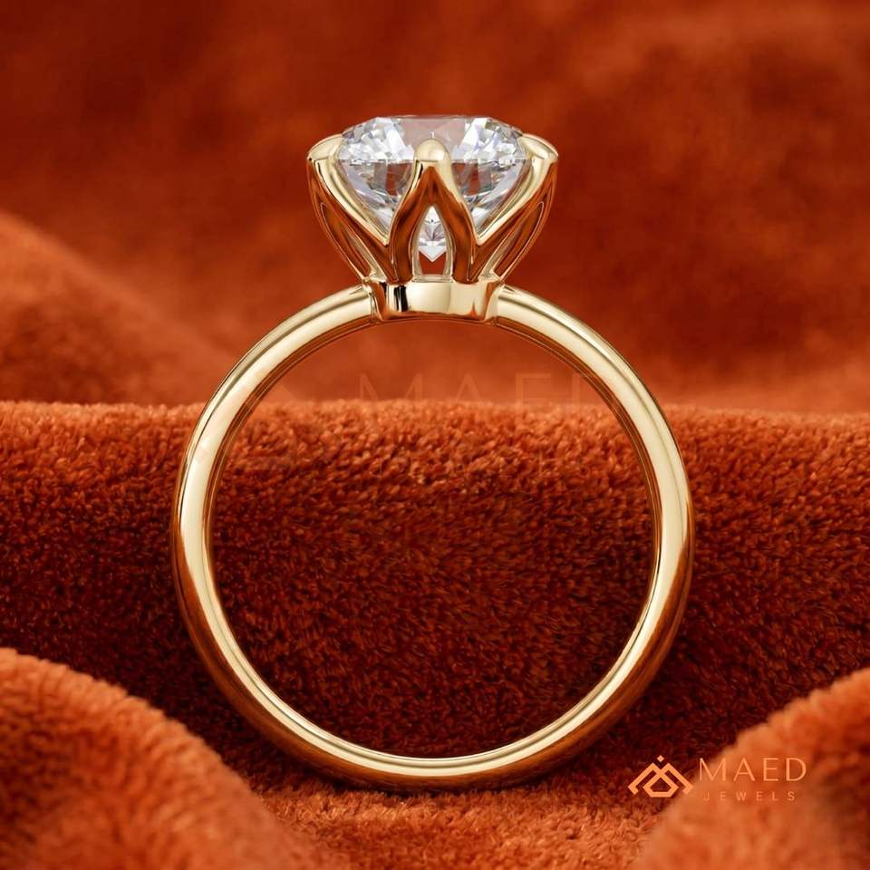 Anillo Solitario Clásico de Oro Redondo con Puntas de Brújula – Anillo de Moda Minimalista de Lujo