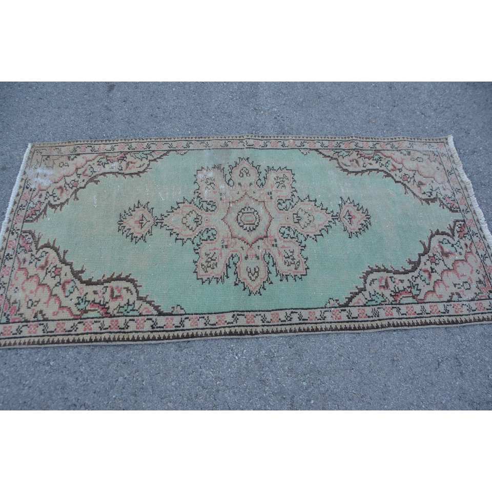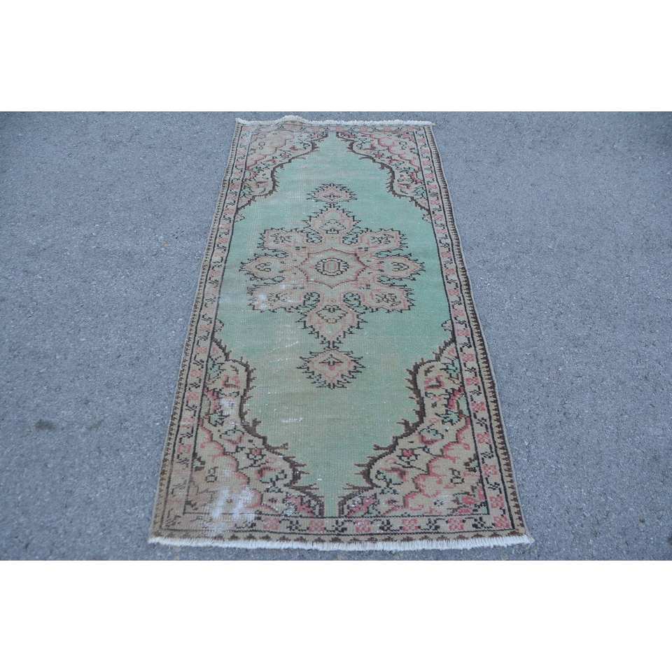 Alfombra clásica de lana verde Beige de 2,9x6,1 pies Vintage turco área grande rectángulo Patchwork látex abstracto para alfombra de habitación de pasillo