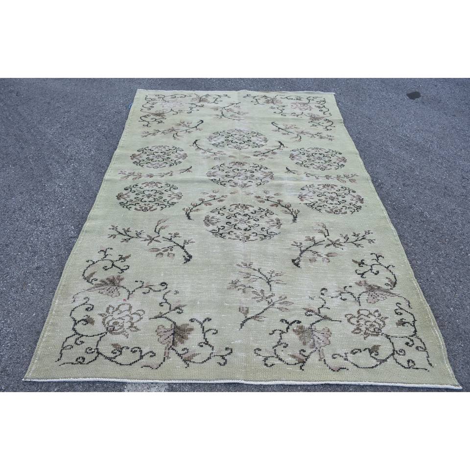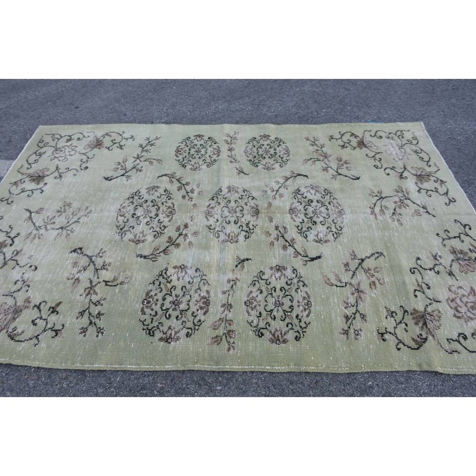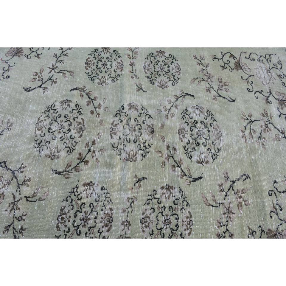 Alfombra de lana de retazos verde clásica, 5,1x7,8 pies, área grande, diseño Aubusson turco para sala de estar o pasillo, respaldo de látex