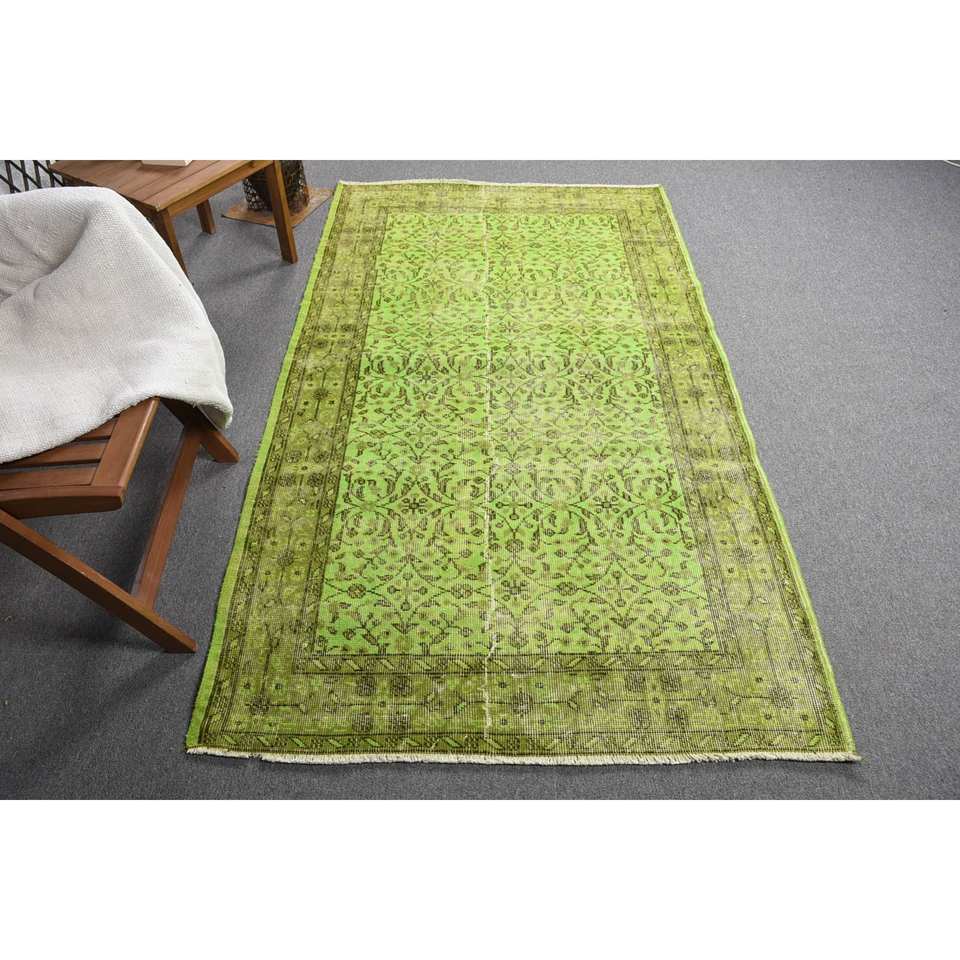 Alfombra turca Vintage verde clásica 3,9X6,7 pies diseño de retales de tejido plano para decoraciones de sala de estar