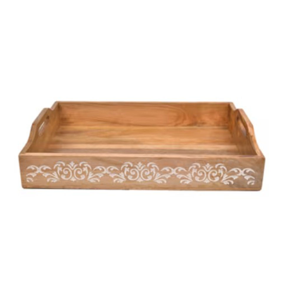 Bandeja Rectangular Clásica de Madera de Mango Tallada a Mano con Asas Recortadas, Bandeja Decorativa Rústica, Accesorios de Cocina