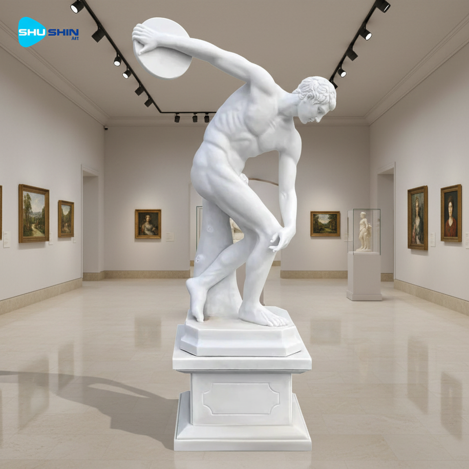 Estatua Clásica de Mármol de Discóbolo de Miron, Diseño Europeo Hecho a Mano, para Uso en Interiores, Jardines e Iglesias
