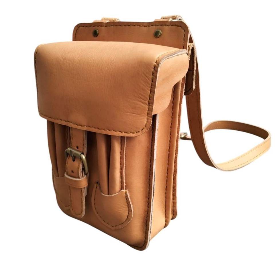 Bolso cruzado de cuero genuino hecho a mano clásico, bolso de mensajero pequeño Retro con correa de hebilla para viajes al aire libre desde Indonesia