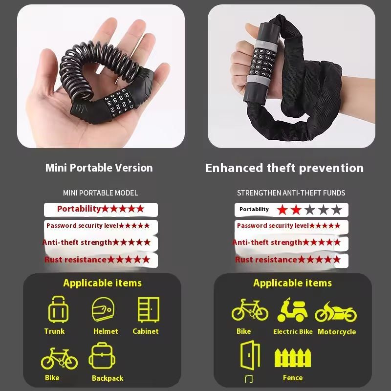 Candado para Casco Clásico con Cadena, Combinación de 4 Dígitos, Candado para Casco con Contraseña, Cable de Acero Resistente al Agua, Candado Antirrobo para Bicicleta
