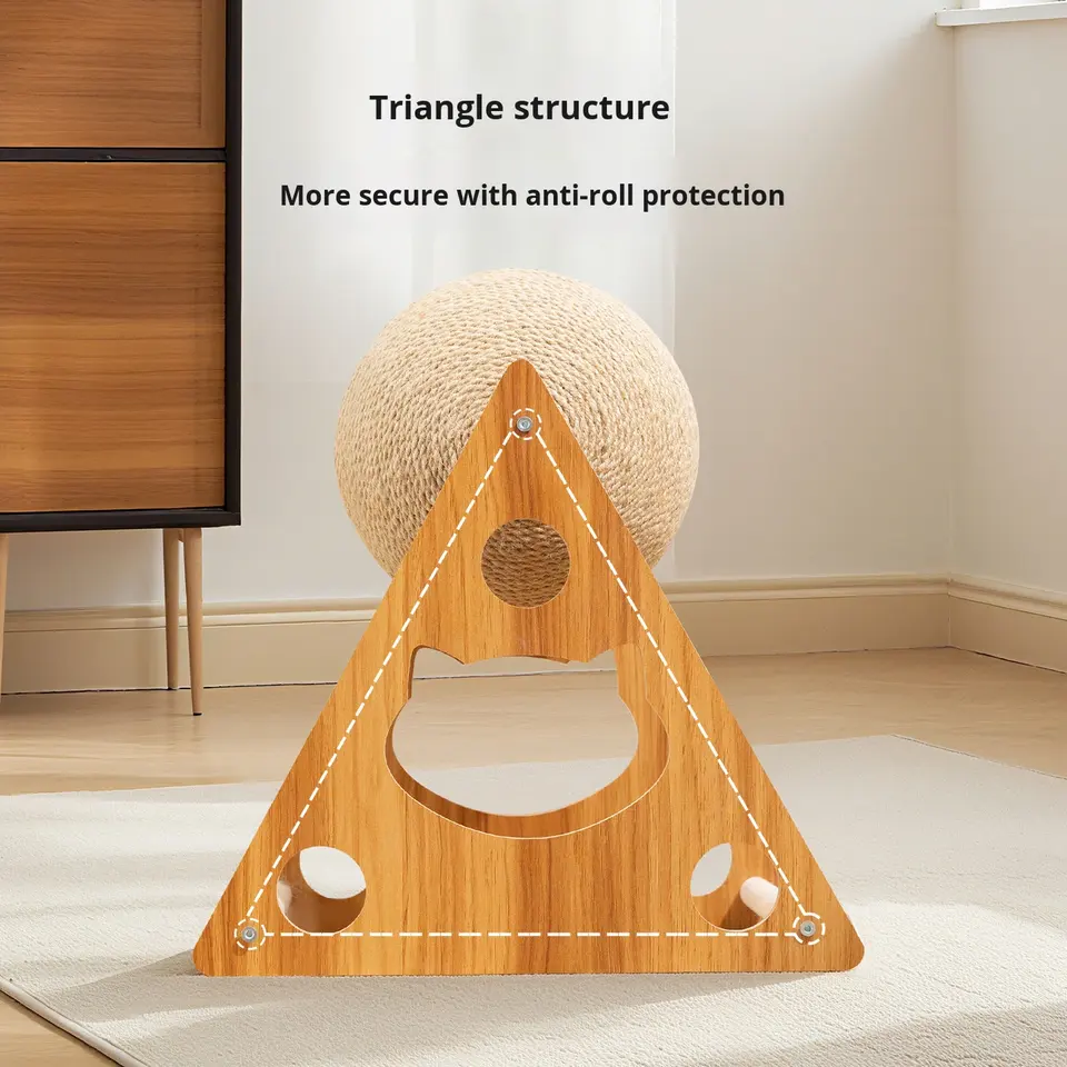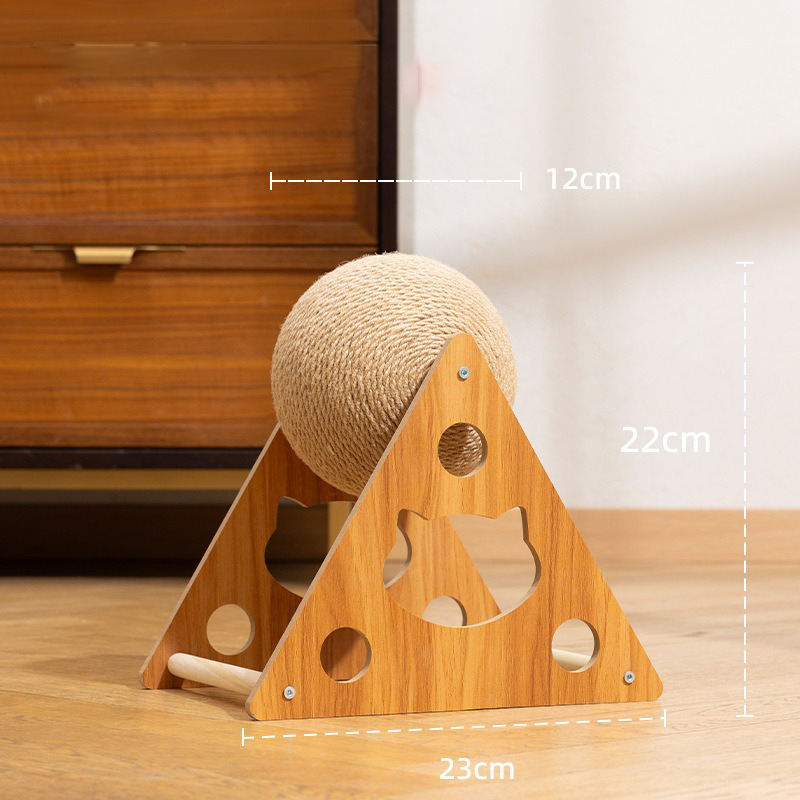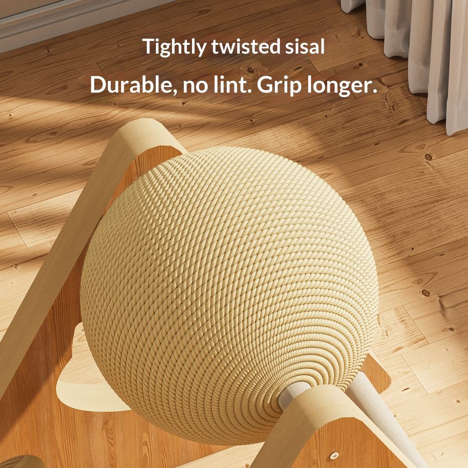 Rascador Interactivo Clásico de Alta Calidad para Gatos, con Bola de Madera, Cuerda de Sisal Envuelta a Mano y Juguete de Plumas para Gatos