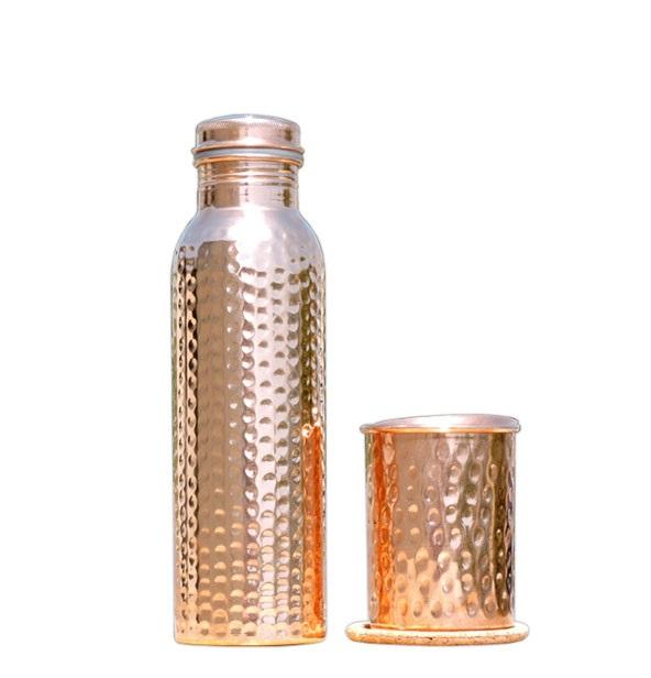 Botella de cobre brillante pura de tamaño de forma Irregular clásica, diseño personalizado con estilo indio, botella de cobre al por mayor hecha a mano