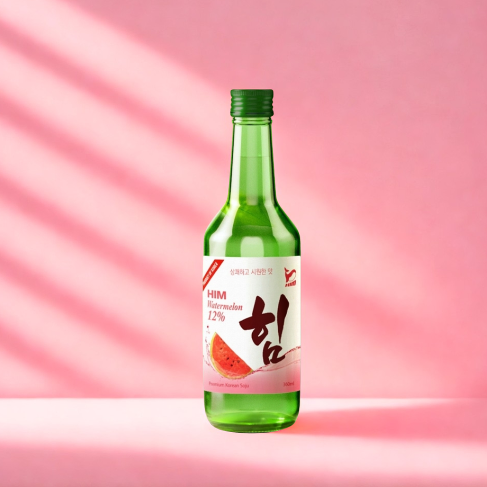 Soju coreano clásico con refrescante sabor a sandía Him 360ml Soju en una botella de licor vibrante Ingrediente principal Alcohol