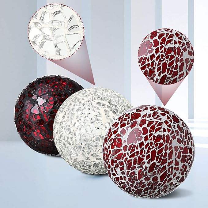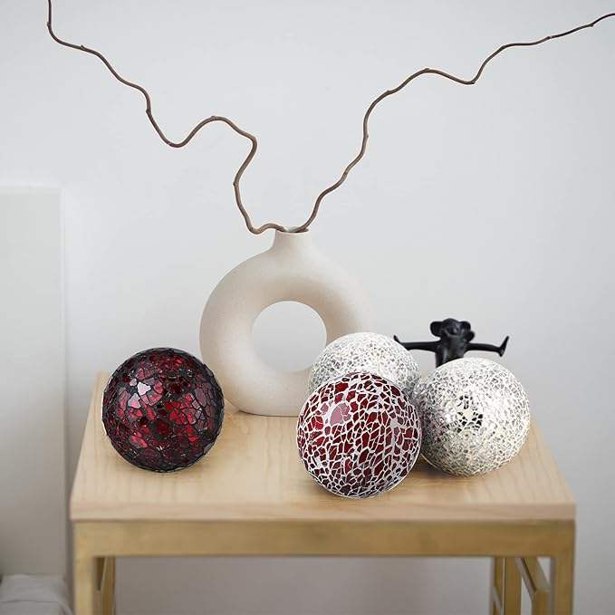 Bolas Decorativas de Mosaico de Vidrio de Lujo Clásico - Adornos Iluminados Hechos a Mano para el Hogar Moderno y la Sala de Estar de Alta Calidad