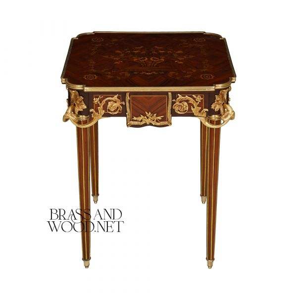 Juego de Mesa de Centro de Madera con Incrustaciones de Lujo Clásico con Detalles en Latón