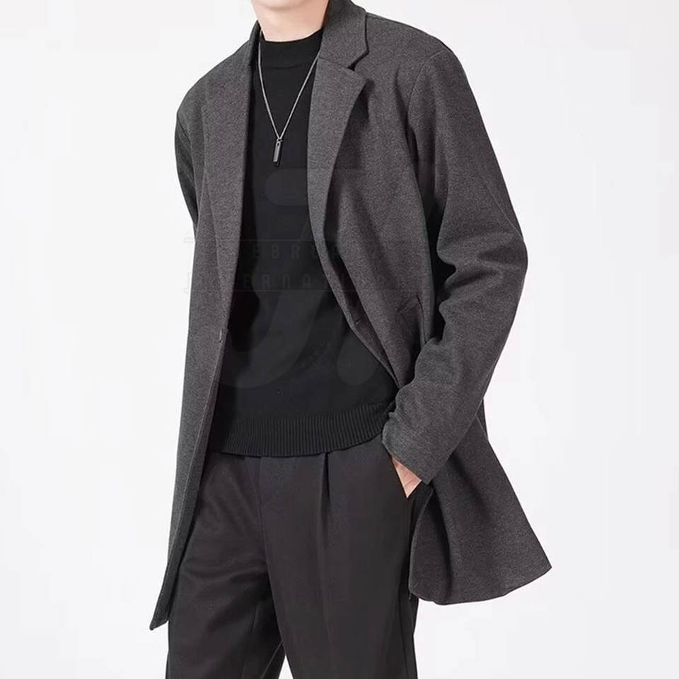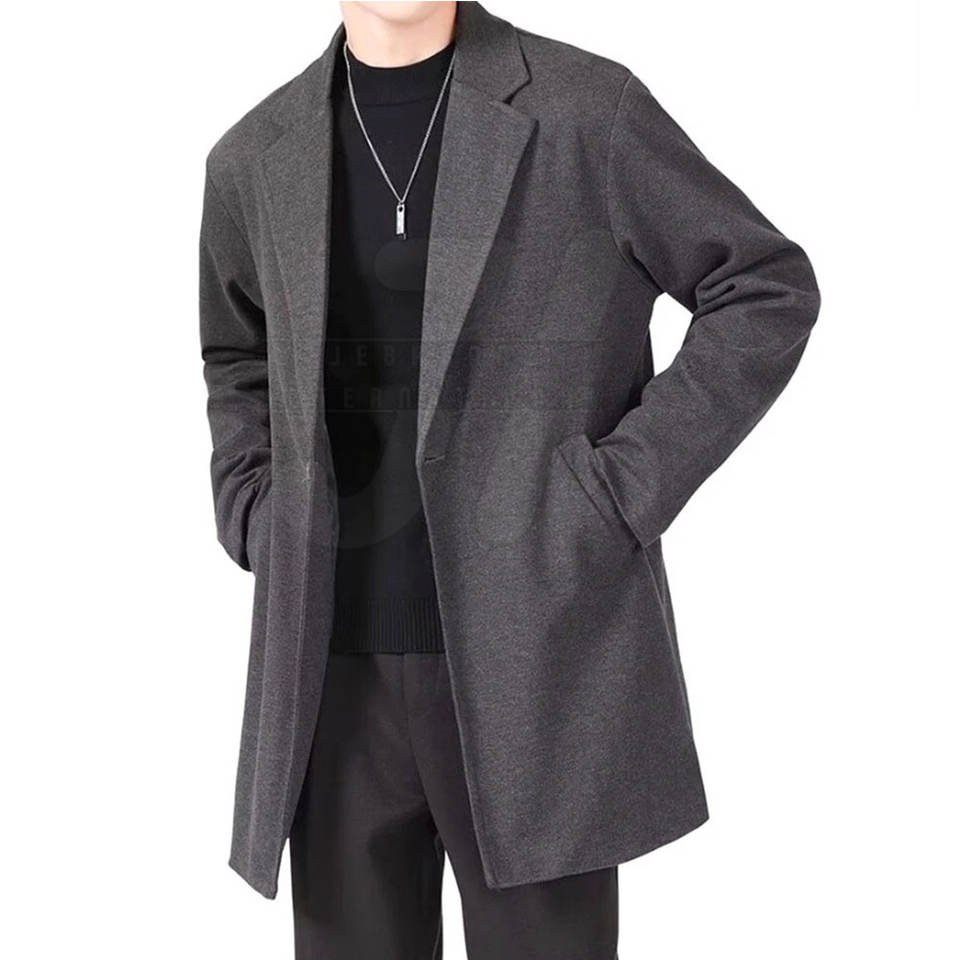 Abrigo largo clásico para hombre con botones decorativos y ventilación trasera Abrigo largo informal para hombre con ajuste relajado