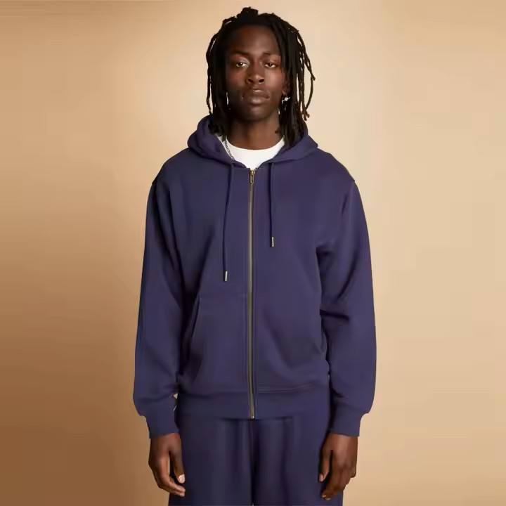 Classic Mens Navy Full-Zip Hoodie-Sudadera con capucha versátil y acogedora para la comodidad durante todo el año, ideal para ropa informal, deportes